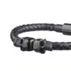 Le matériau utilisé pour la fabrication de ce bracelet homme cuir tressé est de l’acier inoxydable de type 316L, aussi appelé acier chirurgical. L’acier 316L est un acier haut de gamme, idéal pour la fabrication de bijoux. Subtil alliage de plusieurs éléments (le fer, le nickel ou le chrome), l’Acier inoxydable est un matériau particulièrement prisé pour ses nombreuses vertus. Il est très solide et robuste, totalement hypoallergénique, ne rouille pas et, contrairement à l’Agent, ne s’oxyde pas. Sa résistance à l’eau et à la transpiration en font un métal idéal pour des Bijoux à porter tous les jours. Nul besoin donc de retirer son bracelet pour faire du sport ou un plongeon dans l’eau de mer ou encore prendre sa douche!