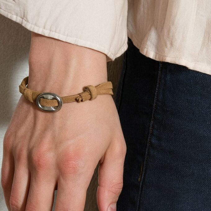 Ce mélange de matériaux donne au bracelet une touche chic mais décontractée, idéale pour compléter une tenue urbaine, casual ou plus habillée. L’acier inoxydable doré assure une tenue parfaite dans le temps : il ne rouille pas, ne noircit pas et ne perd pas son éclat. Le daim naturel, quant à lui, apporte chaleur, confort et caractère.