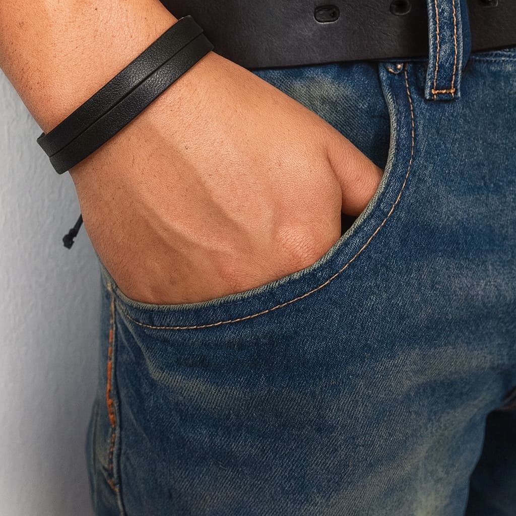 Grâce à ses nœuds coulissants, ce bracelet en cuir pour homme est entièrement ajustable et peut s’adapter à tous les poignets. Cette fermeture simple et pratique assure un maintien parfait tout en garantissant un grand confort au quotidien.