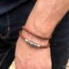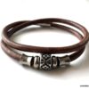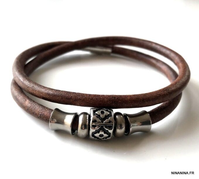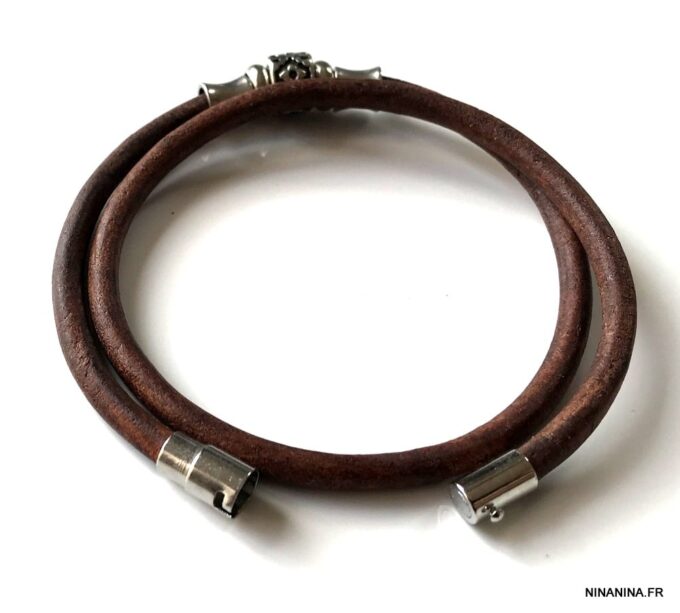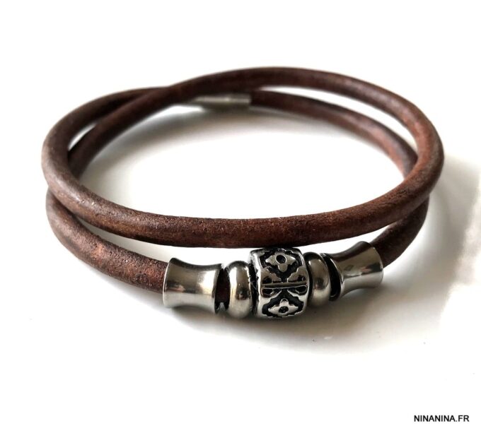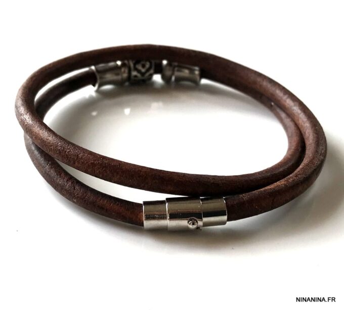 Optez sans hésiter pour ce magnifique Bracelet homme cuir Acier Inoxydable double tours composé de rondelles en acier inoxydable et d’un fermoir contemporain aimanté en Acier également monté sur un cordon de cuir marron (5 mm de diamètre), à enrouler autour du poignet, est fait pour vous!