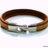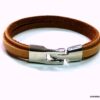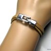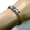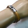 Bracelet homme cuir tressé et lisse fermoir métal argenté