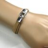 Bracelet 4 rangs cordon cuir noir fermoir Acier argent