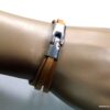 Bracelet cordon cuir 3 rangs fermoir acier inoxydable argent