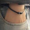 - Existe en noir, marron chocolat, gris, bleu turquoise, rose foncé et naturel. Diamètre de l’anneau : 1,2 cm.