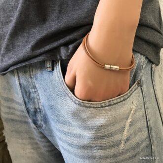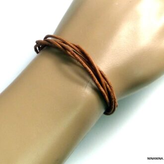 Bracelet multi liens cordon cuir naturel Acier argent