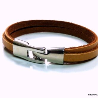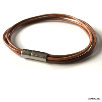Bracelet homme cuir naturel fermoir métal argenté