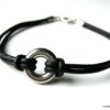 Bracelet cordon cuir ajustable anneau rond Acier argenté