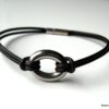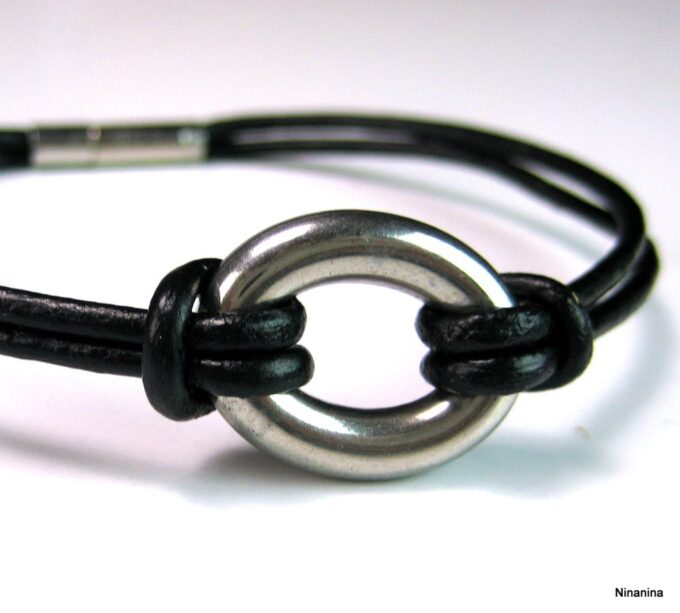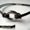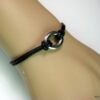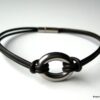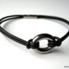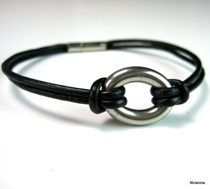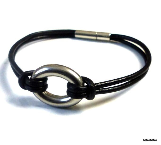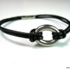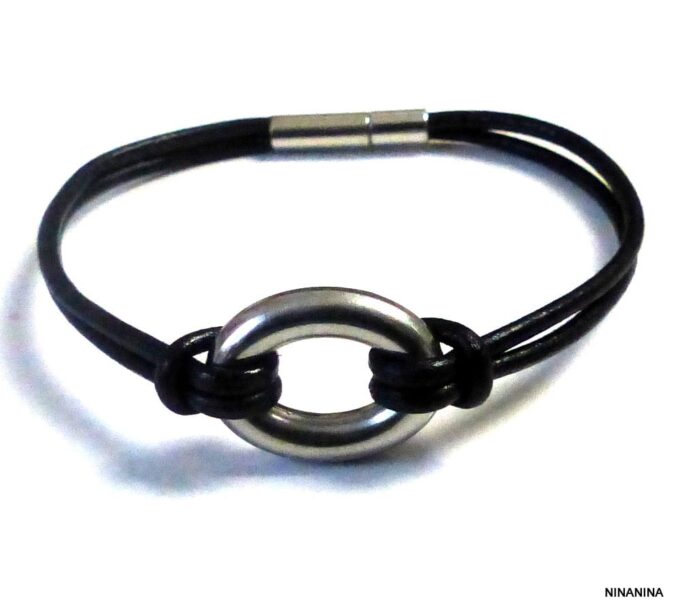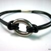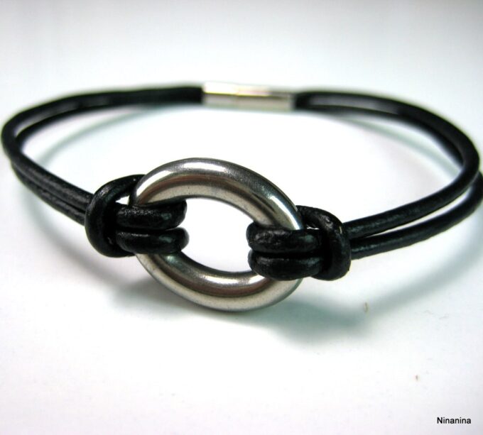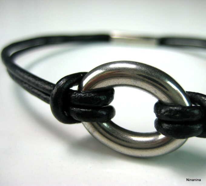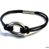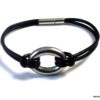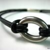 Bracelet homme cordon cuir anneau ovale Acier inoxydable composé d’un anneau bombé ovale en acier inoxydable monté sur un double cordon de cuir noir (2 mm de diamètre).