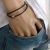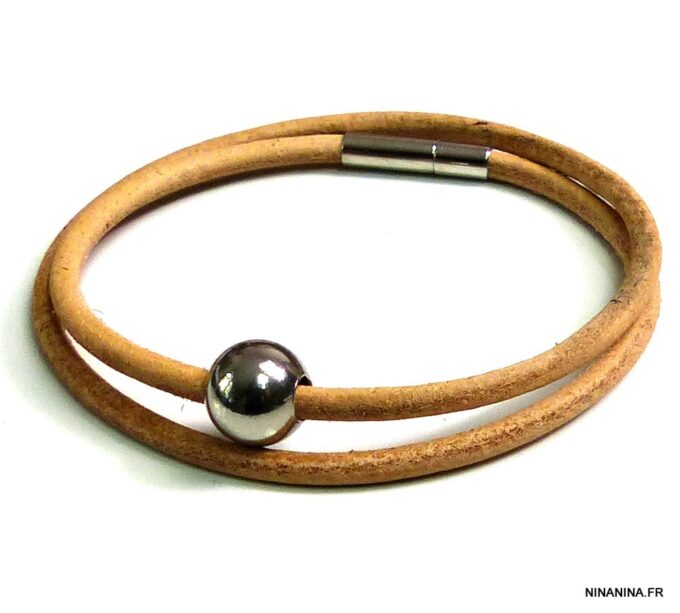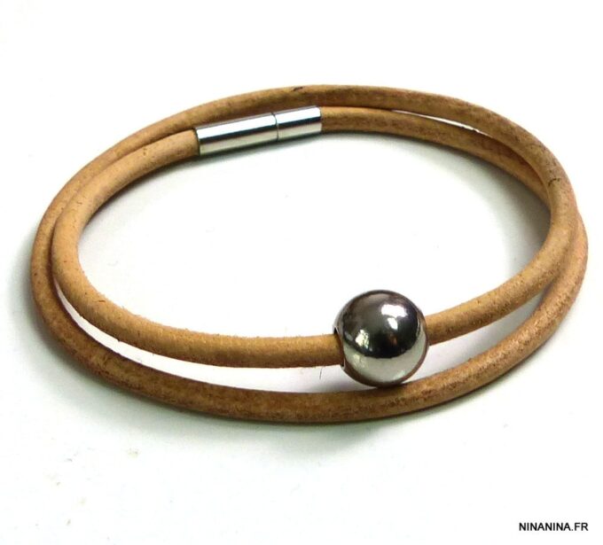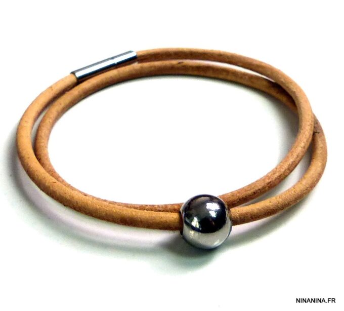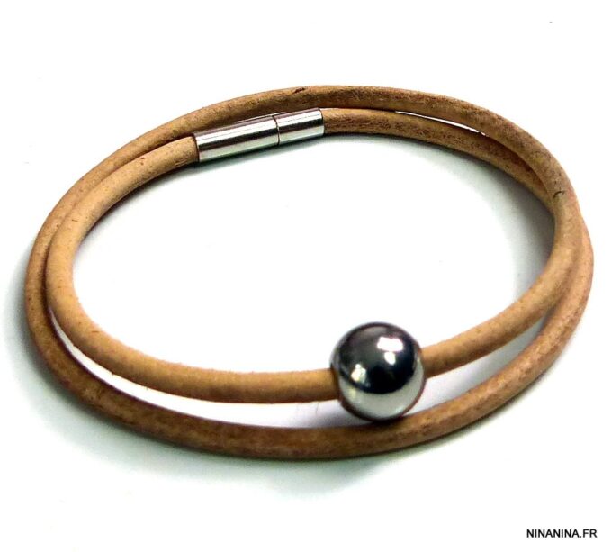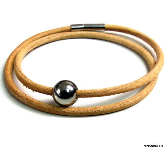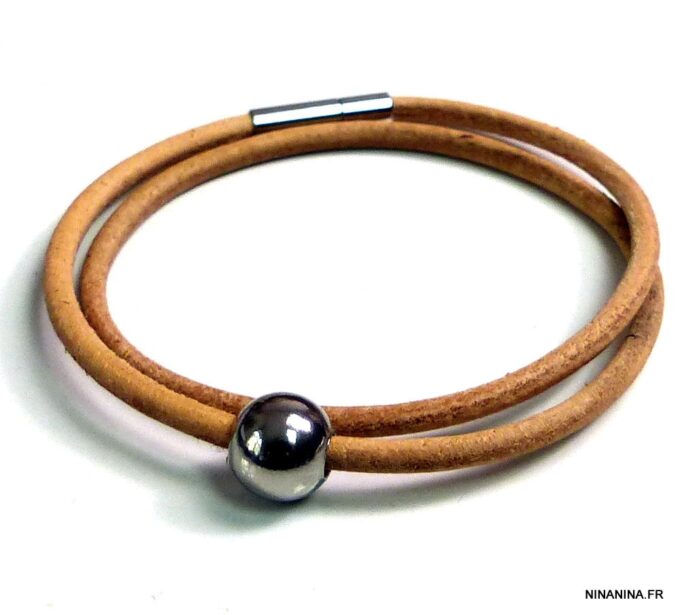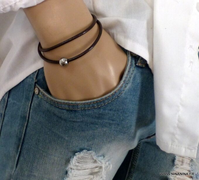 Bracelet cordon cuir 2 tours boule Acier inoxydable