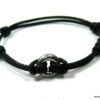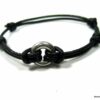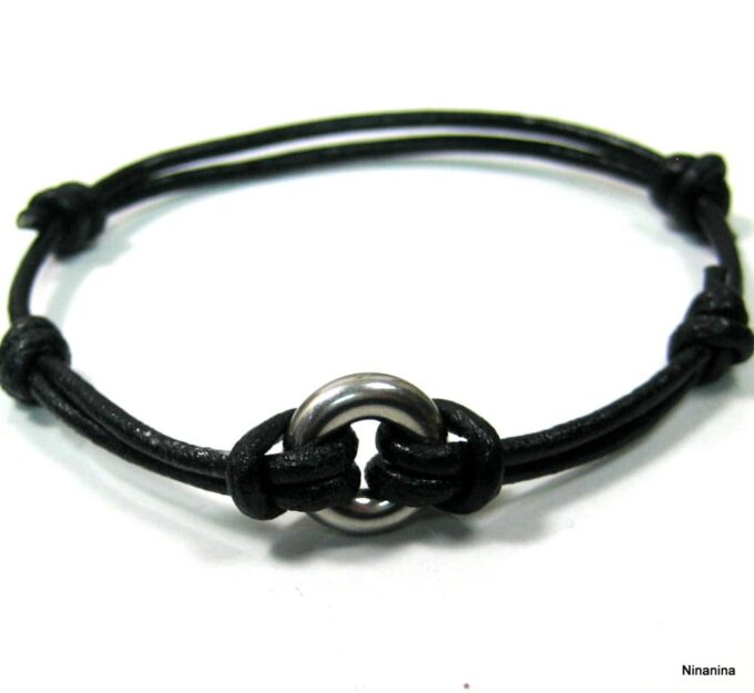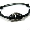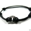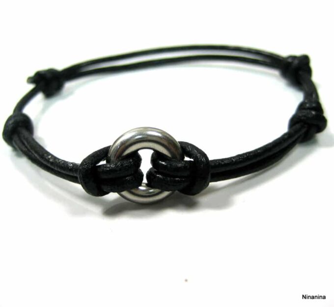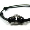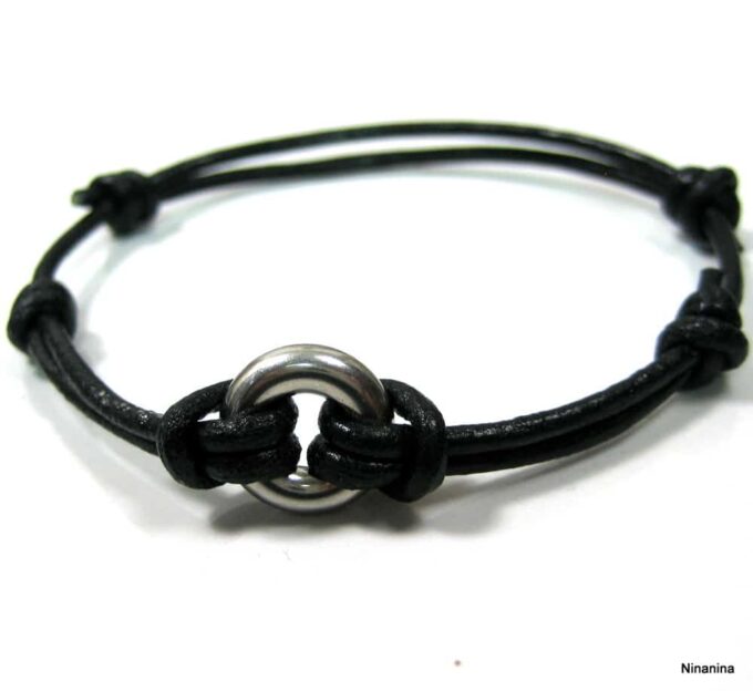 Bracelet cordon Acier inoxydable argenté anneau rond composé d’un anneau bombé en acier inoxydable monté sur un cordon de cuir noir (2 mm de diamètre).