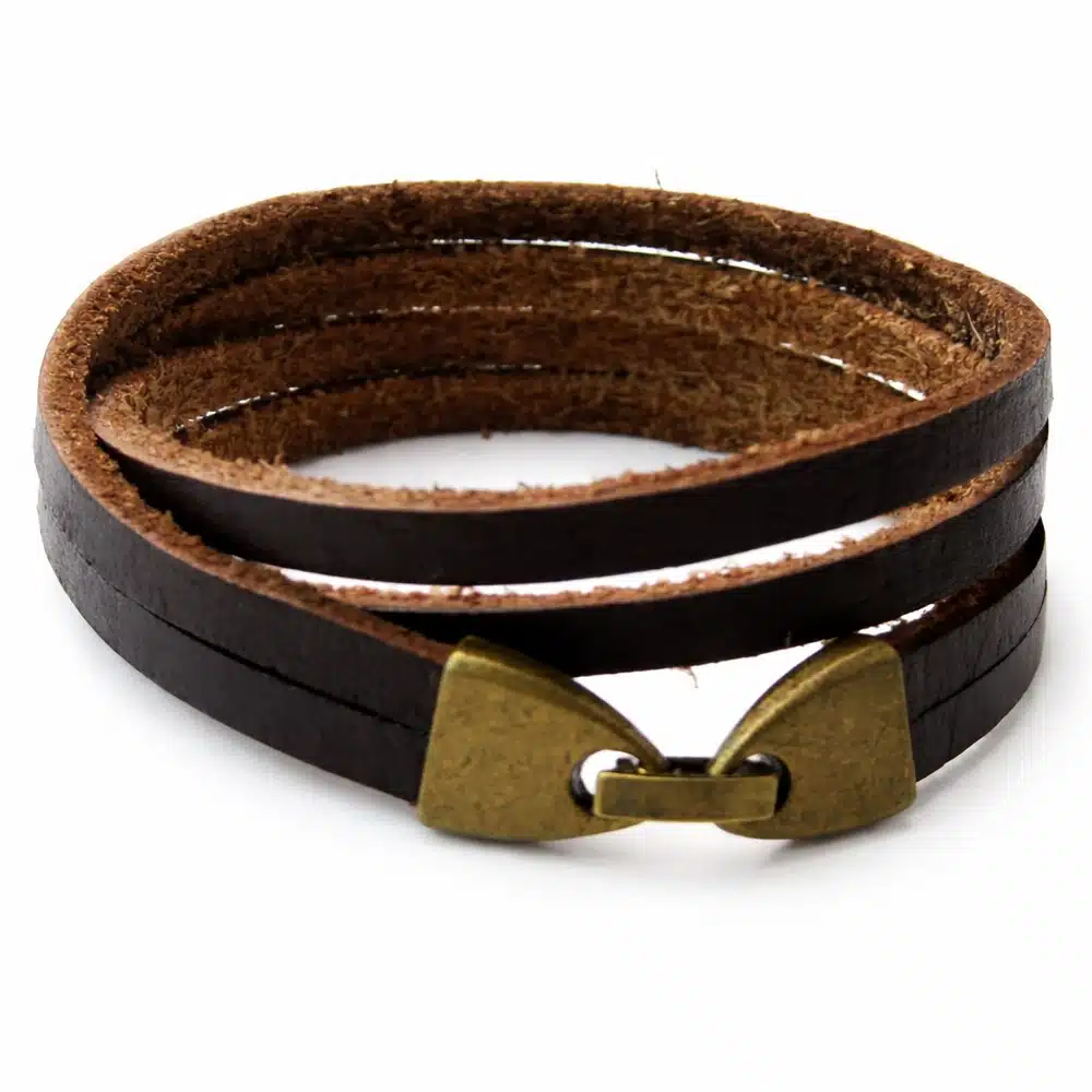 Le bracelet est doté d’un fermoir crochet en métal finition bronze, à la fois robuste et esthétique. Son design vintage apporte une touche brute et intemporelle, tout en assurant une fermeture fiable au quotidien. L’association du cuir naturel et du métal bronze crée un contraste harmonieux, parfait pour un look casual, urbain ou esprit baroudeur.