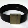 Bracelet cuir homme composé d’un bandeau de cuir monté sur un fermoir magnetique en métal argenté.