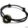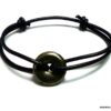 Bracelet pyrite femme homme disque sur cordon cuir noir composé d’un disque bombé en pyrite de fer monté sur un cordon de cuir noir (2mm de diamètre). Diamètre du disque : 1,6 cm. Diamètre : De 5 à 8 cm env ajustable. Fermeture par lien coulissant. Livré dans sa pochette d’organza. Bijou 100% fait-main.