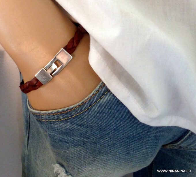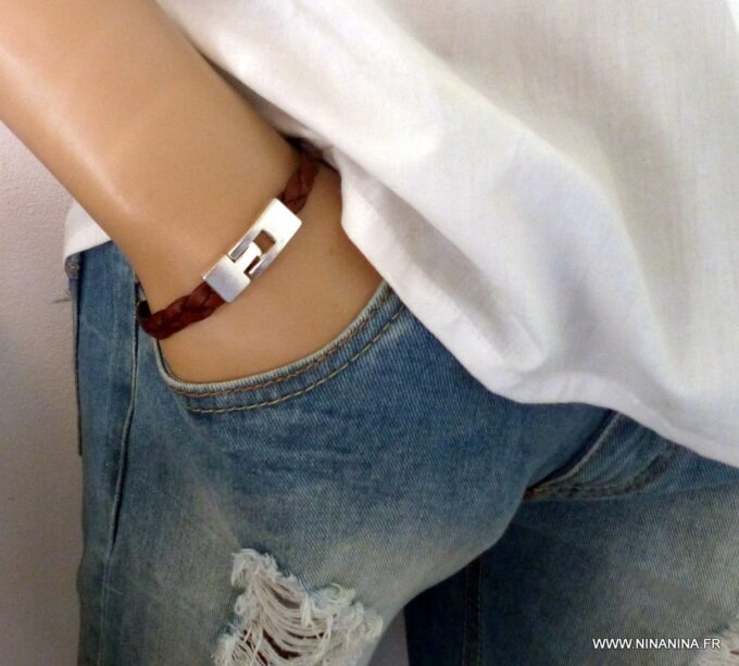 Soyez le premier à laisser votre avis sur “Bracelet homme cuir tressé marron et métal argenté”