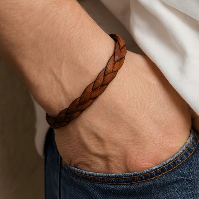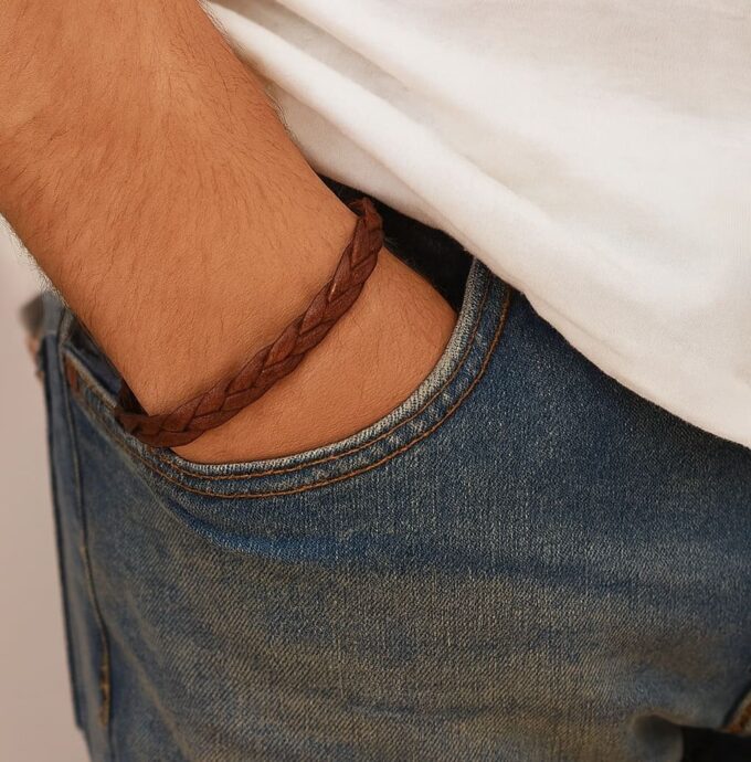 Ce bracelet en cuir tressé se distingue par sa sobriété, sa qualité et sa durabilité. Qu’il soit porté au quotidien ou pour agrémenter une tenue plus habillée, il apporte instantanément du caractère sans en faire trop. Léger, confortable et facile à assortir, c’est un accessoire indispensable pour les hommes qui aiment les bijoux discrets, robustes et authentiques.