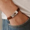 Découvrez un bracelet homme qui allie charme authentique et modernité. Conçu à partir d’un lacet de cuir plat tressé marron, souple et agréable au poignet, il offre une texture naturelle et chaleureuse. Son fermoir rectangulaire argenté, au style géométrique contemporain, assure une fermeture sécurisée tout en apportant une touche masculine et élégante.