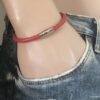 Bracelet cuir rouge tressé homme femme Acier inoxydable