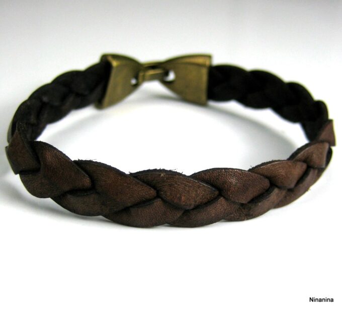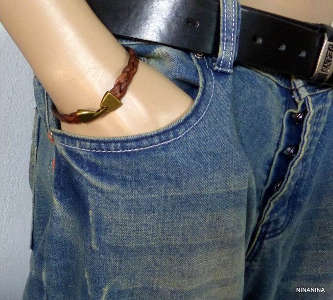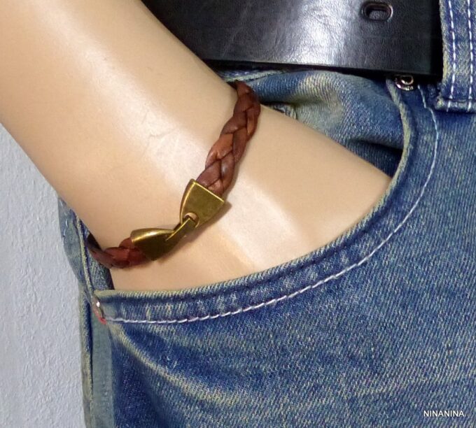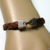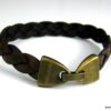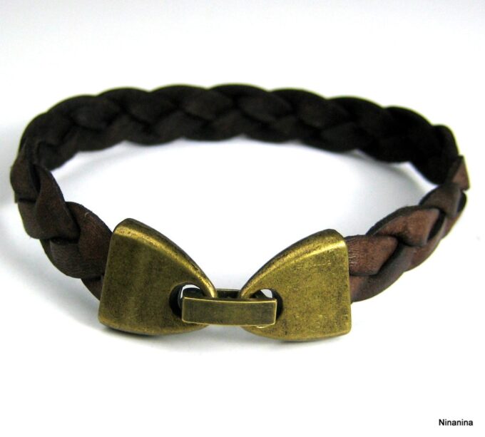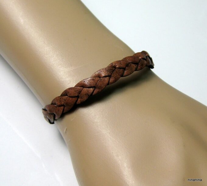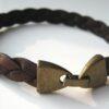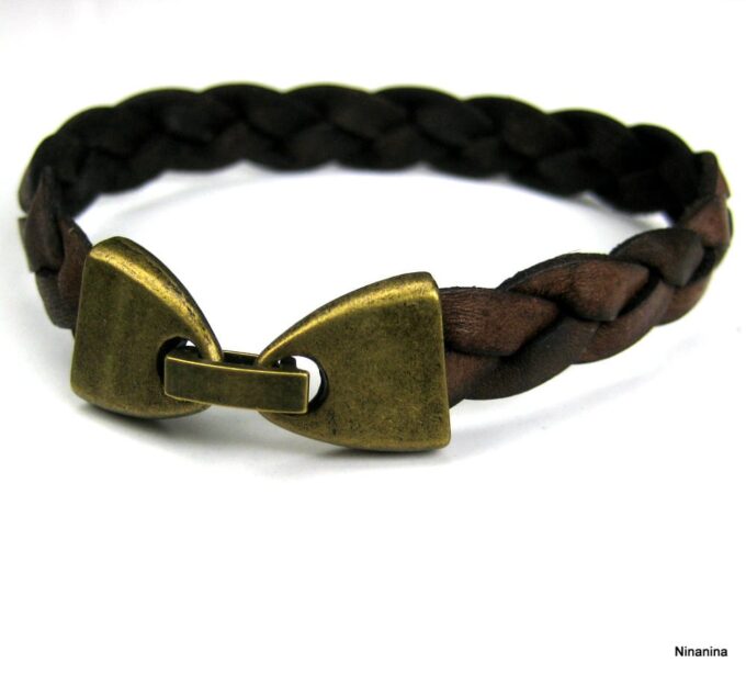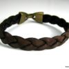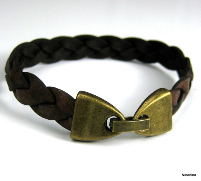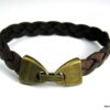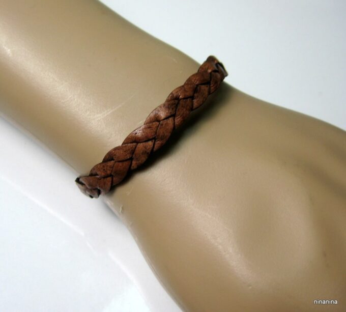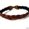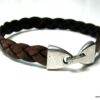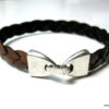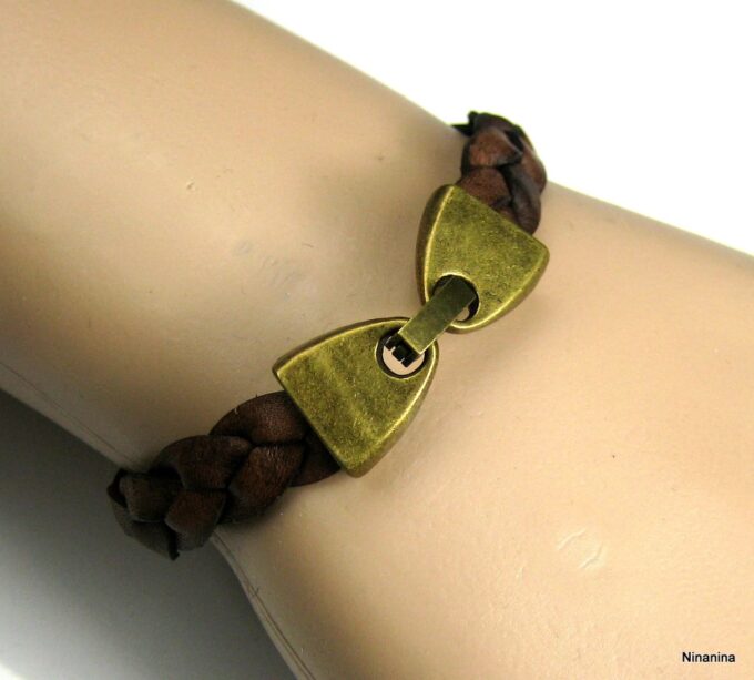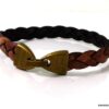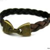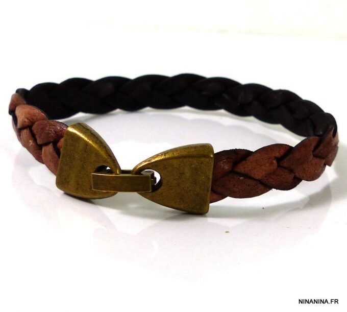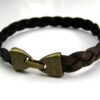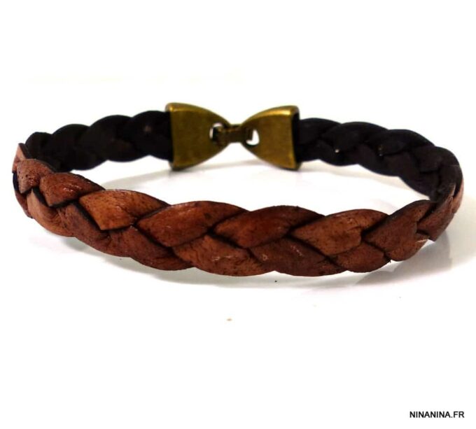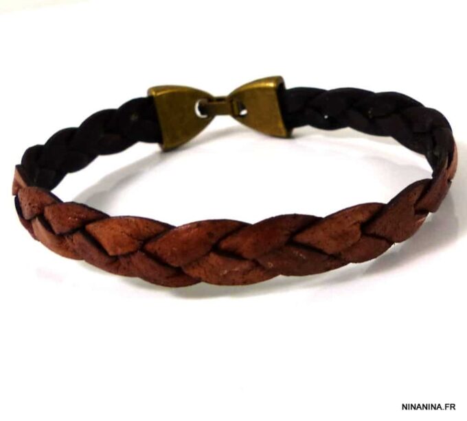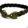Bracelet homme cuir tressé marron métal bronze composé d’un bandeau de cuir marron tressé monté sur un fermoir en métal bronze.