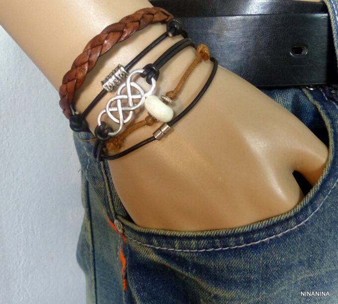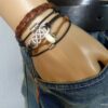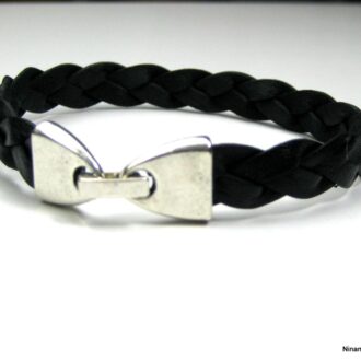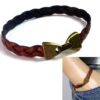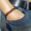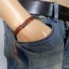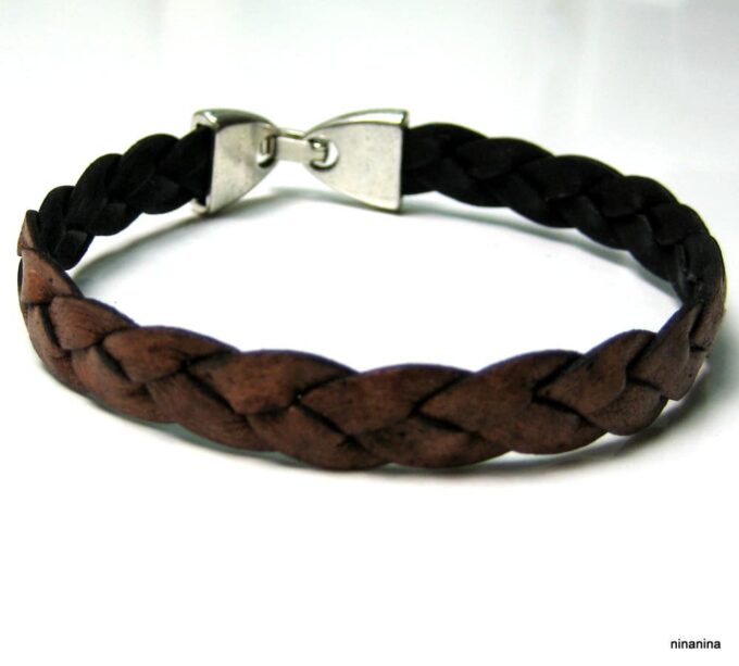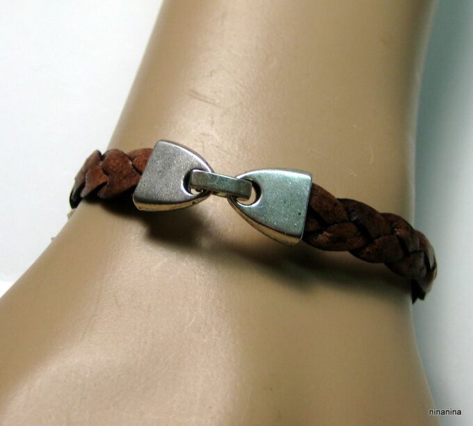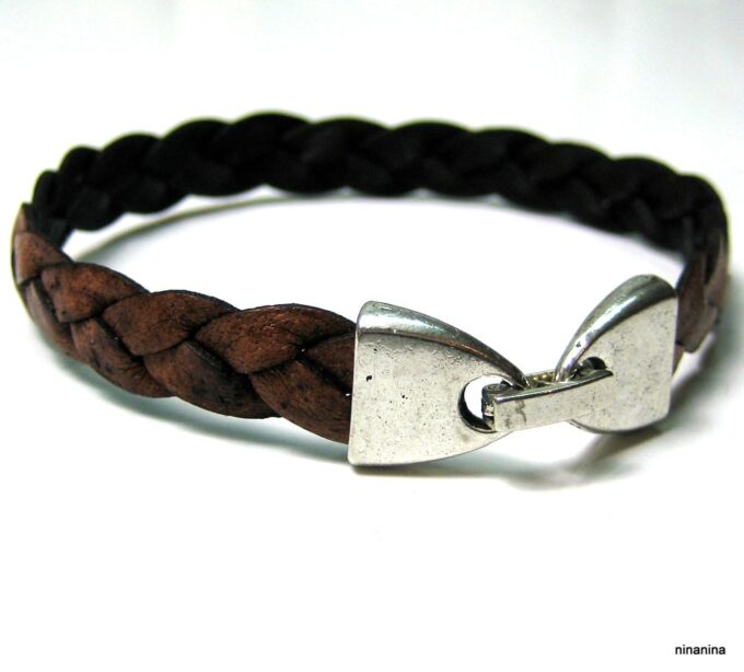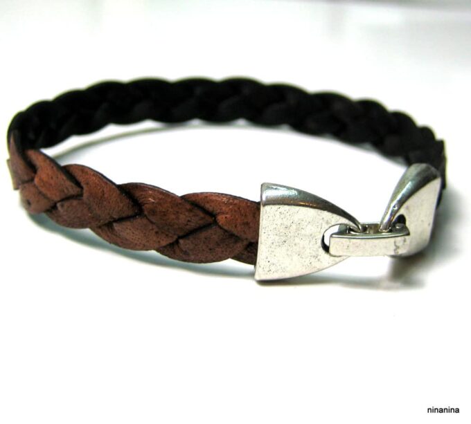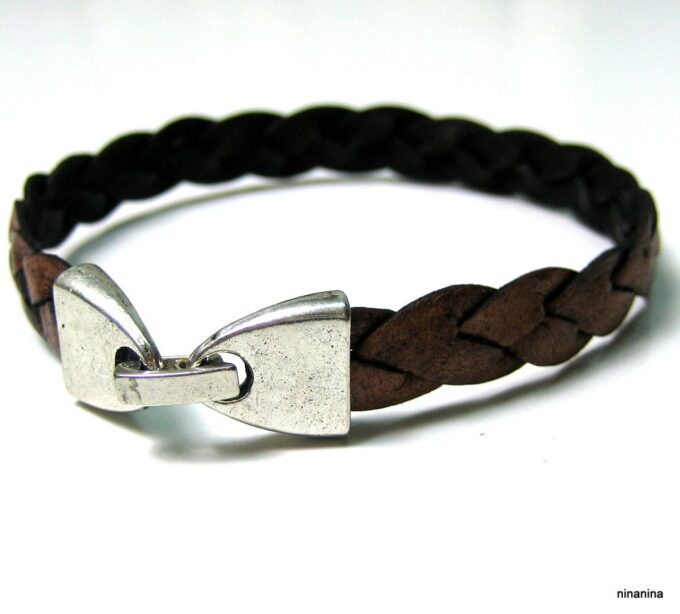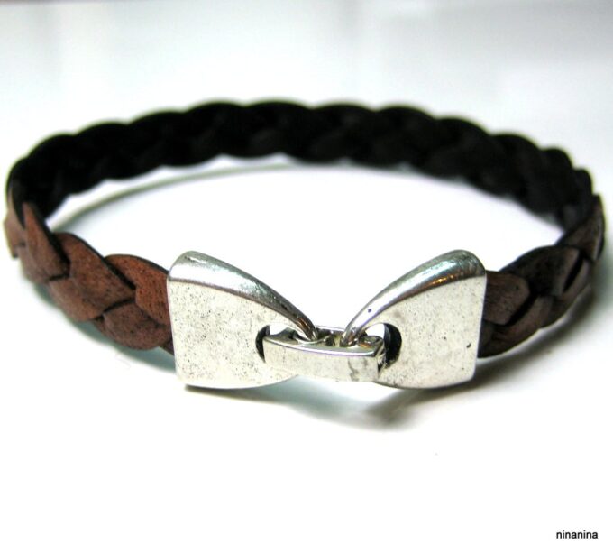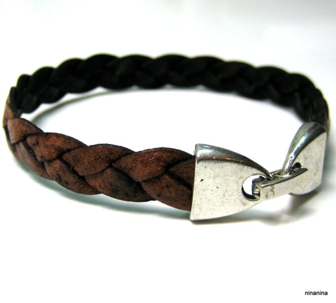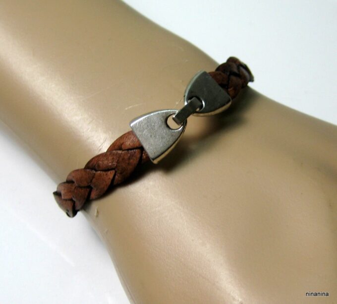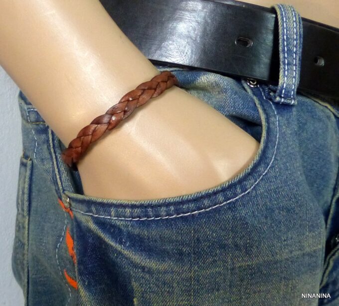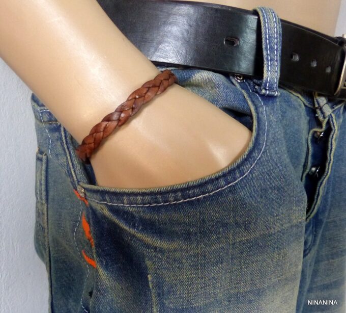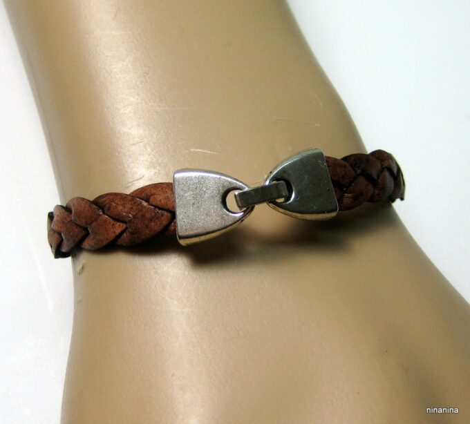 Bracelet homme cuir tressé marron métal bronze composé d’un bandeau de cuir marron tressé monté sur un fermoir en métal bronze.