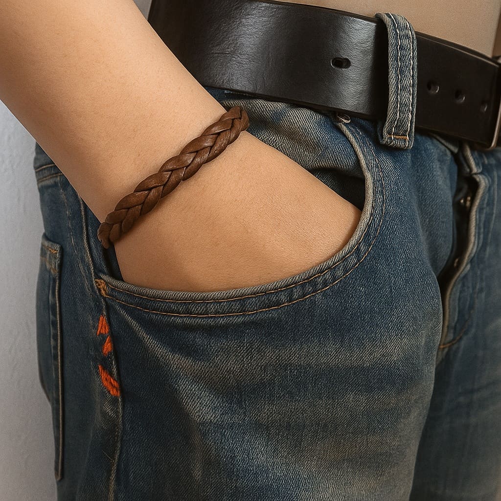 Ce Bracelet homme cuir tressé marron s’accorde avec tous les styles :