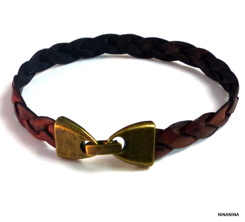Ce bracelet tendance pour homme artisanal en cuir véritable est confectionné à la main à partir d’un cuir tressé marron souple et résistant.