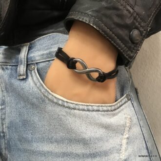 Existe aussi avec un fermoir en métal argent et un bandeau noir.