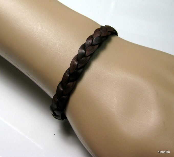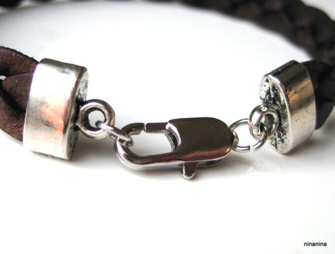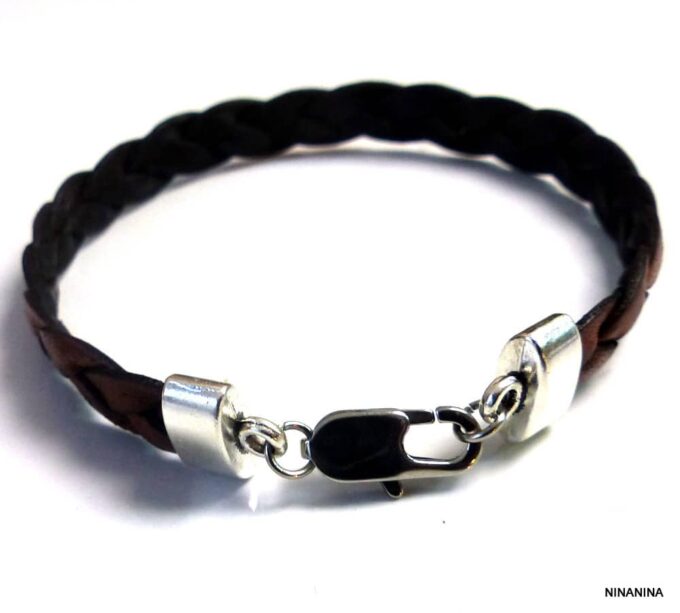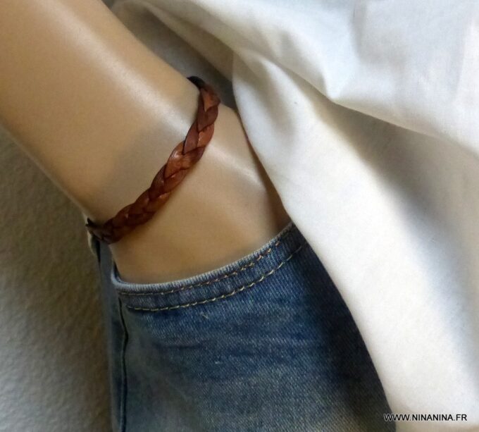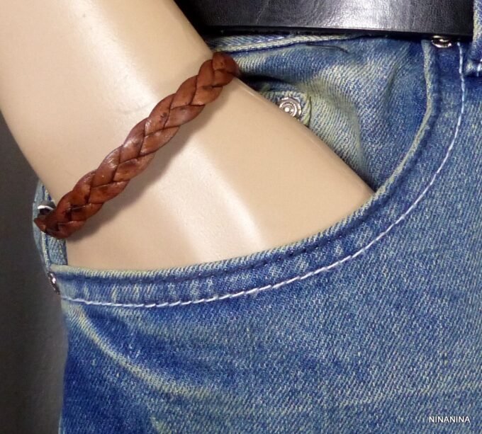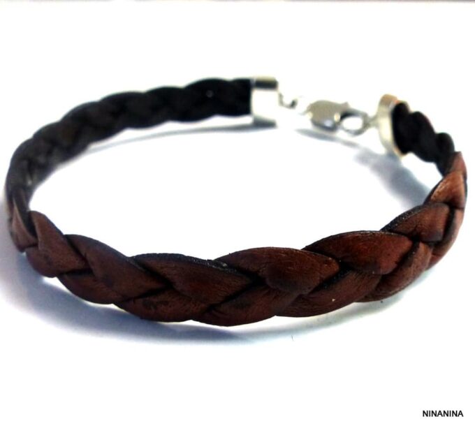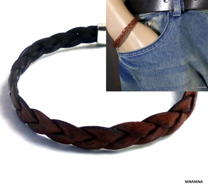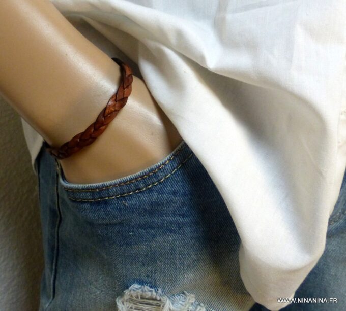 Bracelet homme cuir tressé fermoir acier inoxydable? composé d’un bandeau de cuir marron chocolat tressé monté sur un fermoir en acier inoxydable