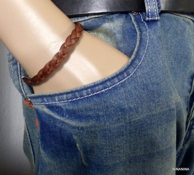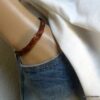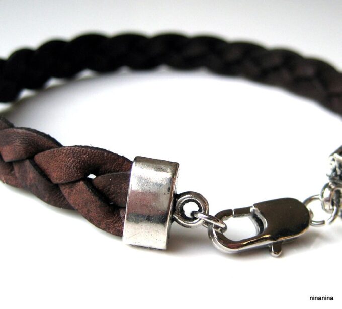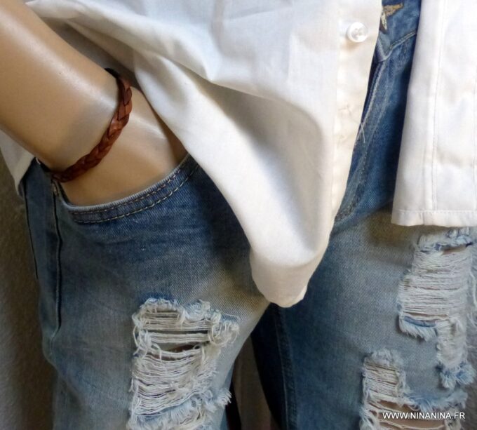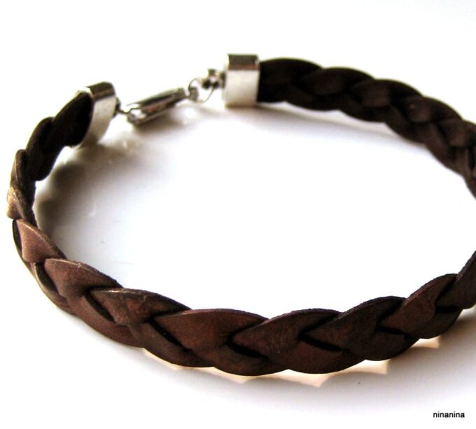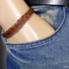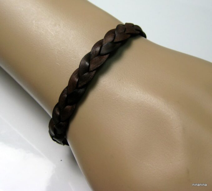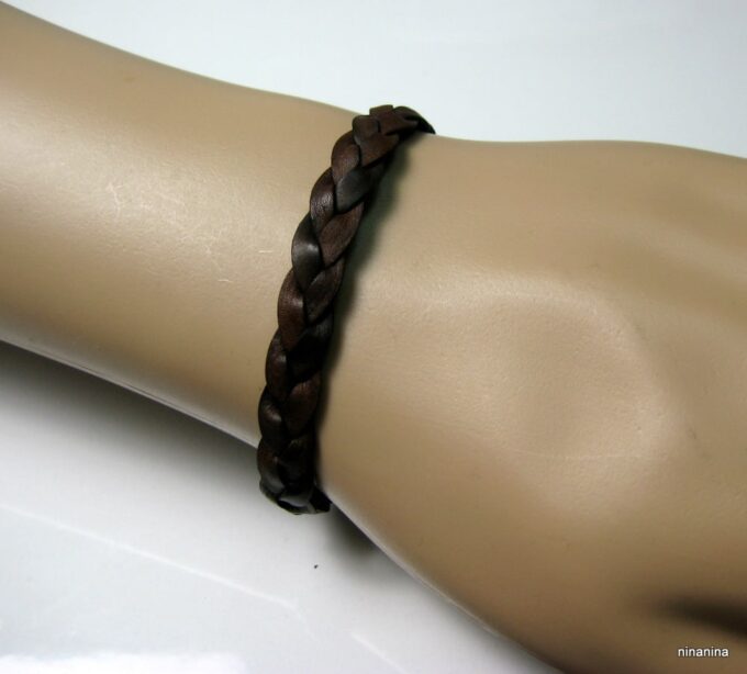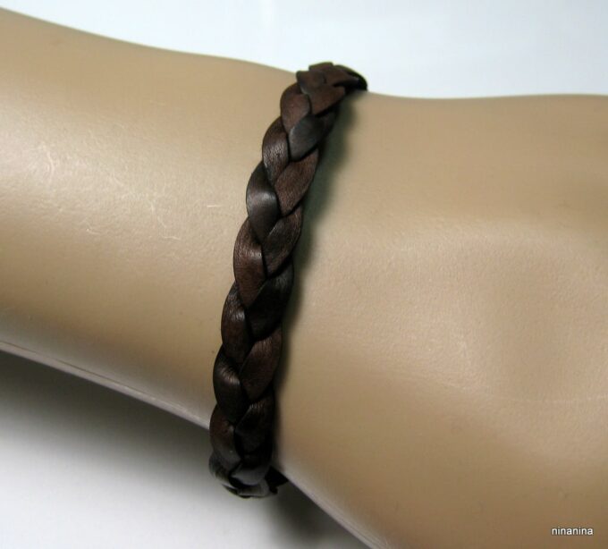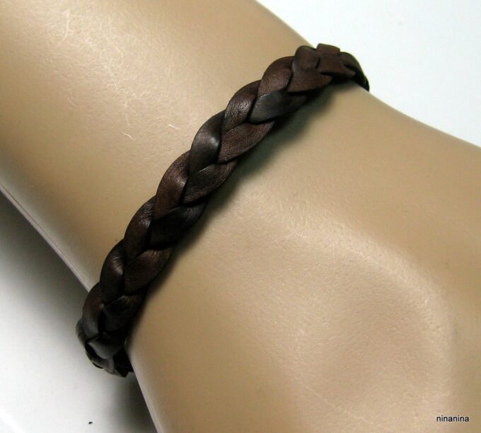 Bracelet homme cuir tressé fermoir acier inoxydable? composé d’un bandeau de cuir marron chocolat tressé monté sur un fermoir en acier inoxydable