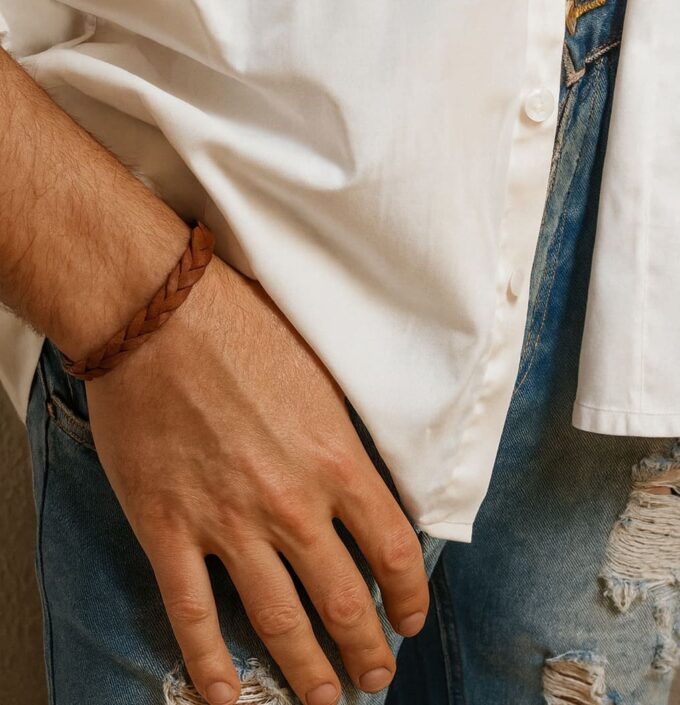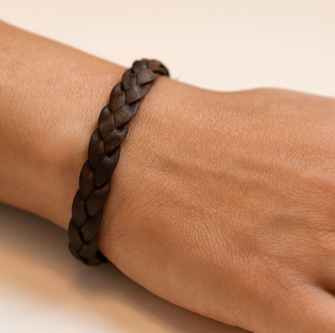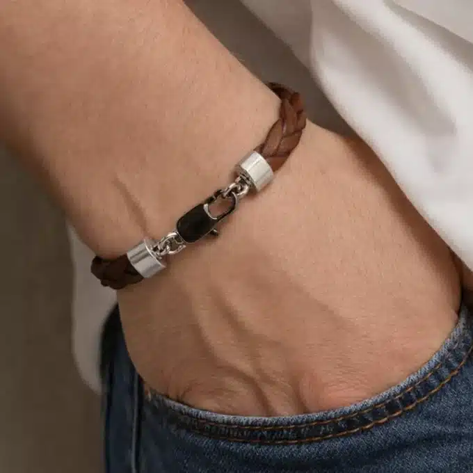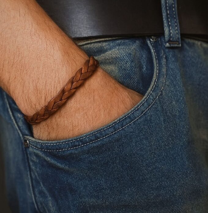 Grâce à son design sobre et masculin, ce bracelet en cuir tressé s’adapte à toutes les tenues : du casual au chic, du look urbain au style plus habillé. Léger, flexible et confortable, il se porte facilement toute la journée, seul pour un style épuré ou combiné à d’autres bracelets en acier ou en cuir pour un effet stacking tendance.