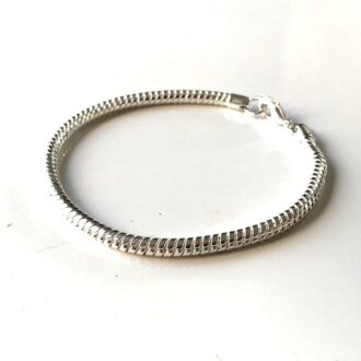 Ce joli Bracelet maille serpent en argent plaqué de grande qualité est unique et fabriqué à la main, de façon artisanale dans notre atelier en France. Il s’agit d’une pièce faite sur mesure qui convient pour la majorité des poignets d’homme ou de femme, les longueurs proposées son de 20 cm pour les hommes et 18 cm pour es femmes. Diamètre de la chaine : 3 mm. Poids : 15 g.