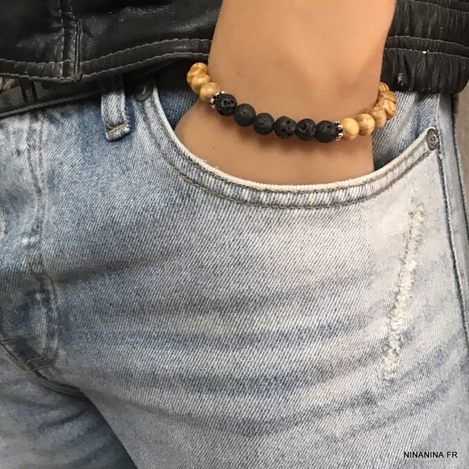 Soyez le premier à laisser votre avis sur “Bracelet perles de bois et pierre de lave homme”