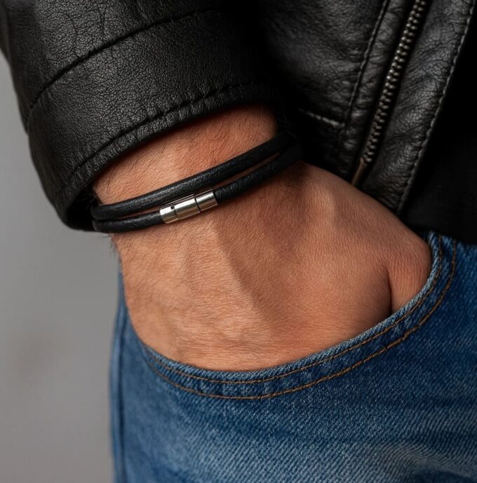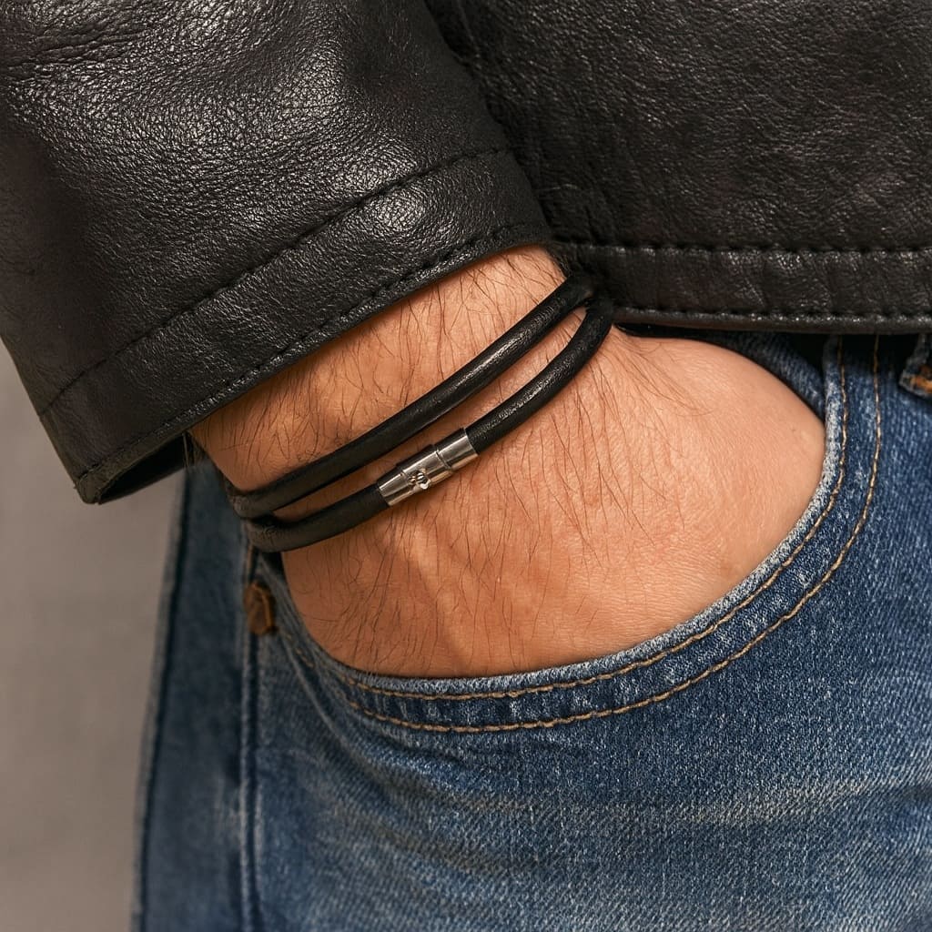 Ce Bracelet Double Tour Cuir Homme est conçu pour les hommes qui recherchent un bijou raffiné, durable et plein de caractère. Réalisé en cuir véritable, il s’enroule deux fois autour du poignet pour un effet multi rangs tendance, sobre et élégant.