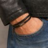 Un Bracelet Double Tour Cuir Homme de fabrication Artisanale