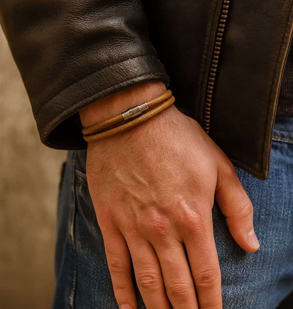 Bracelet Double Tour Cuir Homme – Style Authentique & Fermoir Acier Robuste