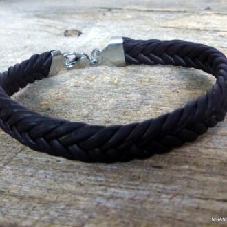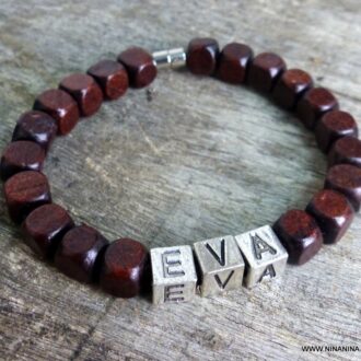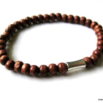 Bracelet perles carrees en bois marron pour homme composé de perles carrées en bois marron chocolat montées sur un cordon de cuir marron.