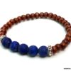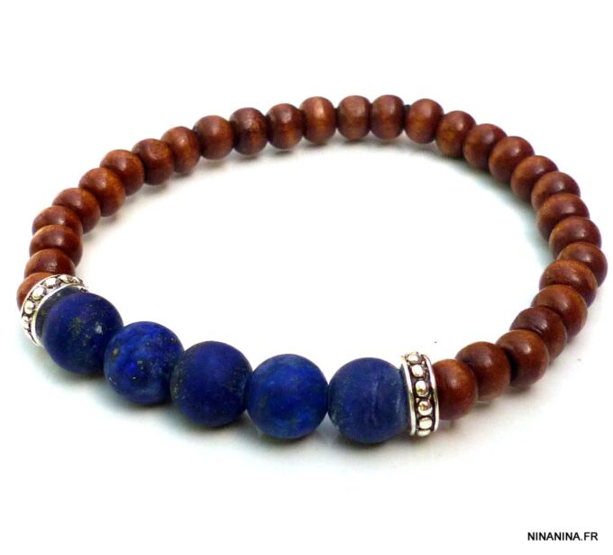 Bracelet perle lapis lazuli bleu homme bois et Argent
