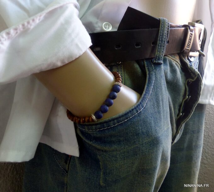 Soyez le premier à laisser votre avis sur “Bracelet perle lapis lazuli bleu homme bois et Argent”