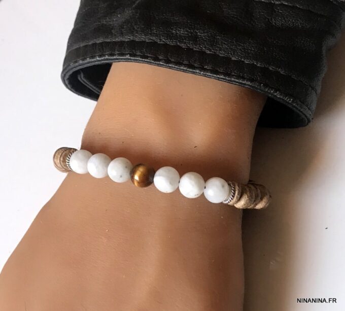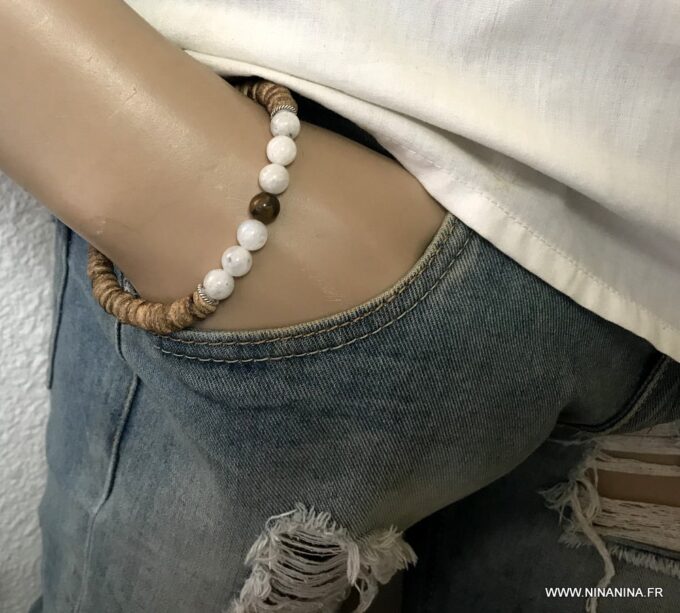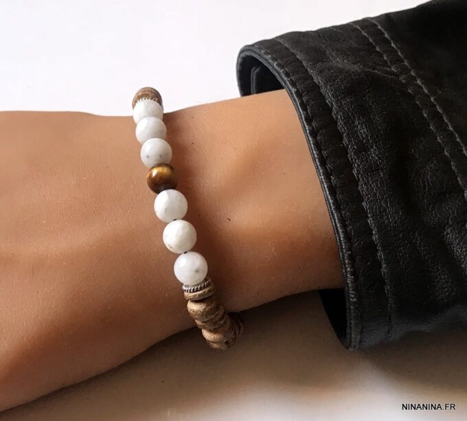 Une fantaisie pure, une douce énergie, ce bracelet homme en bois et ses perles en pierre fine vous communiquera bien plus que du style! Des pierres semi-précieuses aux vertus reconnues, un look raffiné et passe-partout, ce bracelet pierre de lune et oeil de tigre s’imposera très vite à votre poignet cet été et risque d’y rester bien plus longtemps!