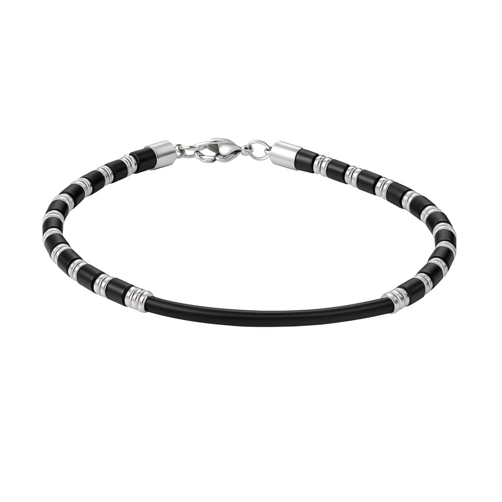Bracelet homme pierre noire et acier argenté – Bijou artisanal élégant et équilibrant