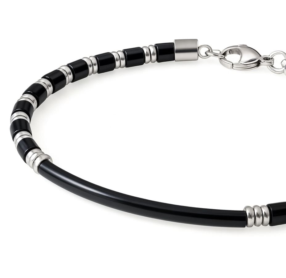 Ce bracelet pour homme associe la puissance de la pierre d’howlite noire à la brillance moderne de l’acier inoxydable argenté.