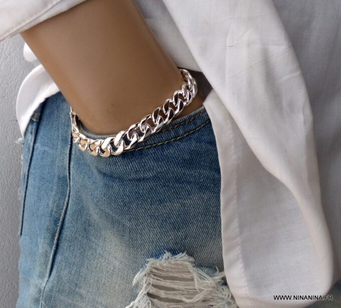 Soyez le premier à laisser votre avis sur “Bracelet homme grosse maille gourmette plaqué Argent”