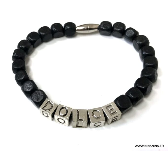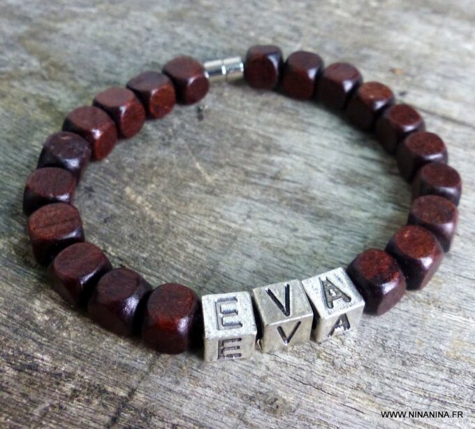 Ce Bracelet prénom personnalisé et ultra tendance est fabriqué à la main avec des perles en bois carrées de grande qualité, de façon artisanale dans notre atelier en France. Chaque pièce faite sur mesure convient pour la majorité des statures. La longueur proposée est de 21 cm. Merci de laisser un commentaire si vous souhaitez une autre longueur. Existe aussi avec des perles blanc cassé. Merci de préciser les lettres en commentaire au moment de la commande. Dim de la perle : 0,8 X 0,8 cm.