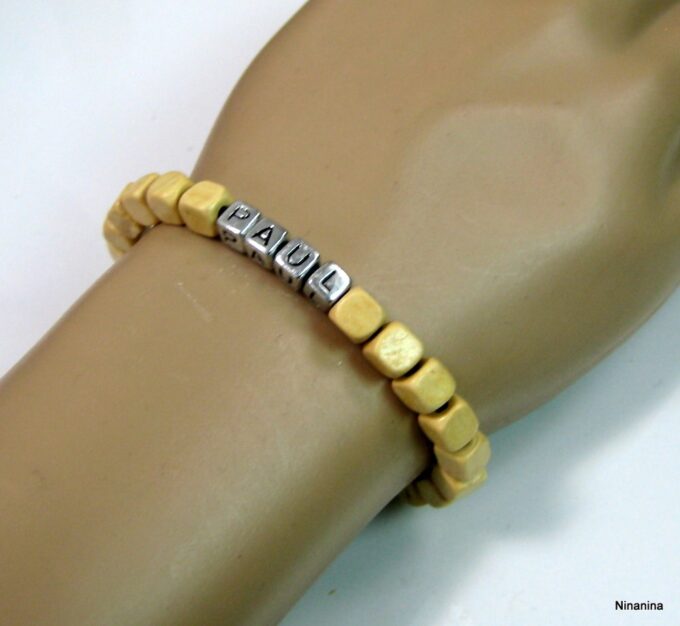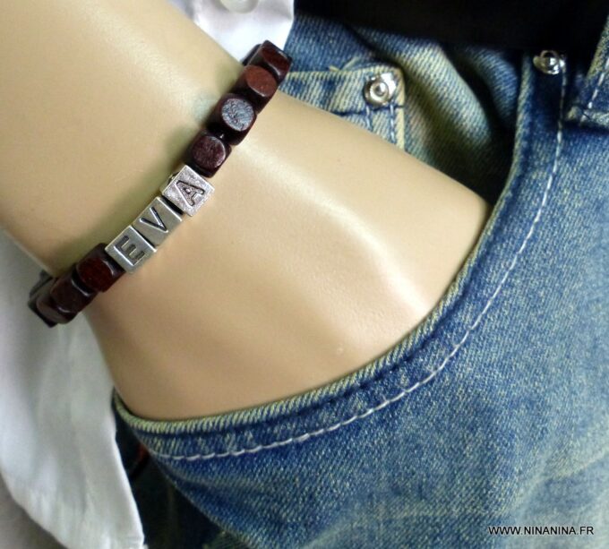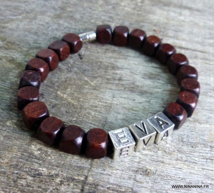 Un bracelet prénom perles bois personnalisable et modifiable à souhait!