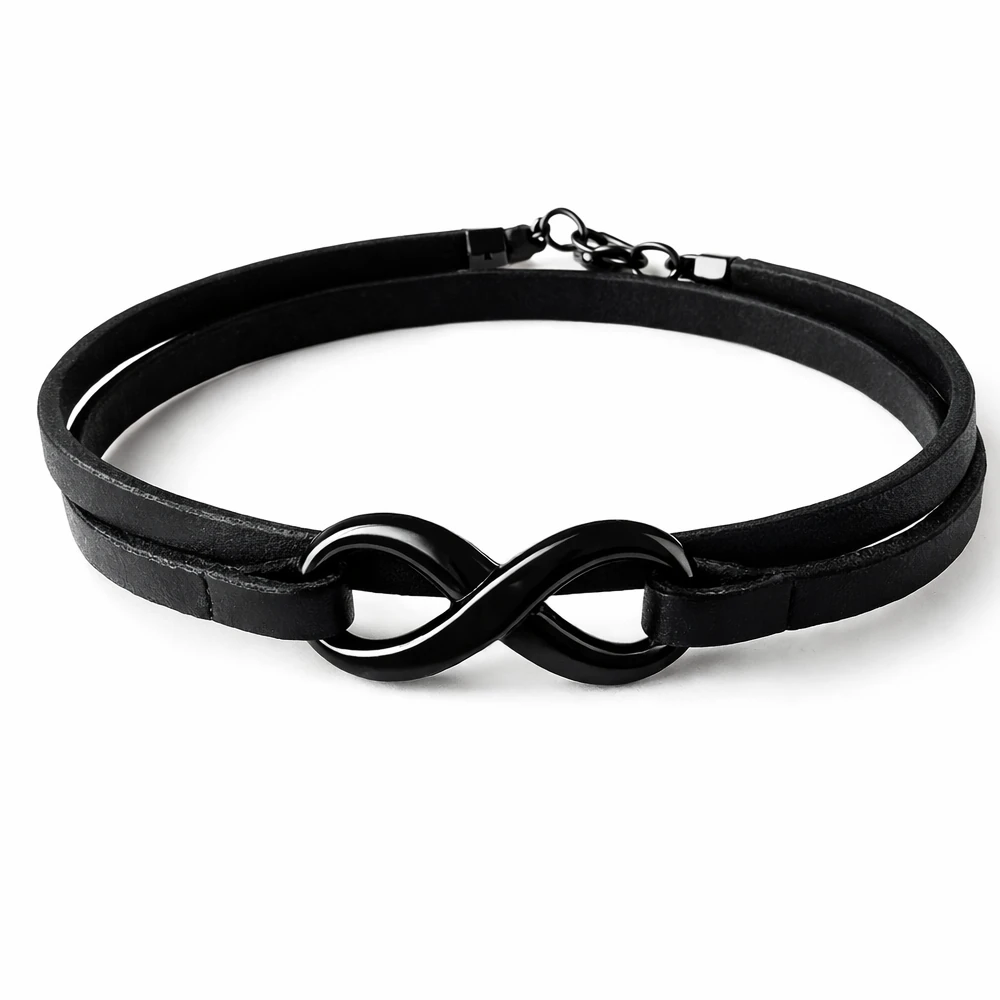 Le symbole infini, placé au centre du bracelet, évoque la continuité, la fidélité et les liens durables. Il transforme ce bijou en accessoire personnel, porteur de sens, tout en conservant une esthétique masculine et épurée.