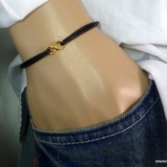 Bracelet infini plaqué or cuir et Argent 925 massif composé d’un pendentif infini en argent 925 plaqué or 24 carats monté sur un cordon en cuir véritable (2mm de diamètre).