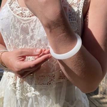 - Pour un look bohème et romantique, vous pouvez porter votre bracelet en jade blanc avec une robe ou une jupe fleurie, des sandales et un chapeau de paille.