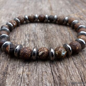 Des perles rondes en jaspe paysage de 8mm de diamètre montées sur un lien elastique, ce bracelet homme ou femme est fait pour vous !