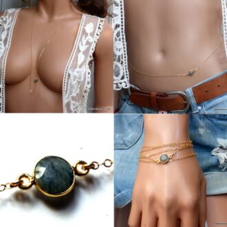 Bracelet jonc argent massif Plaqué Or labradorite composée d’un cabochon ovale double en labradorite naturelle monté sur un anneau ajustable en argent 925 plaqué or.
