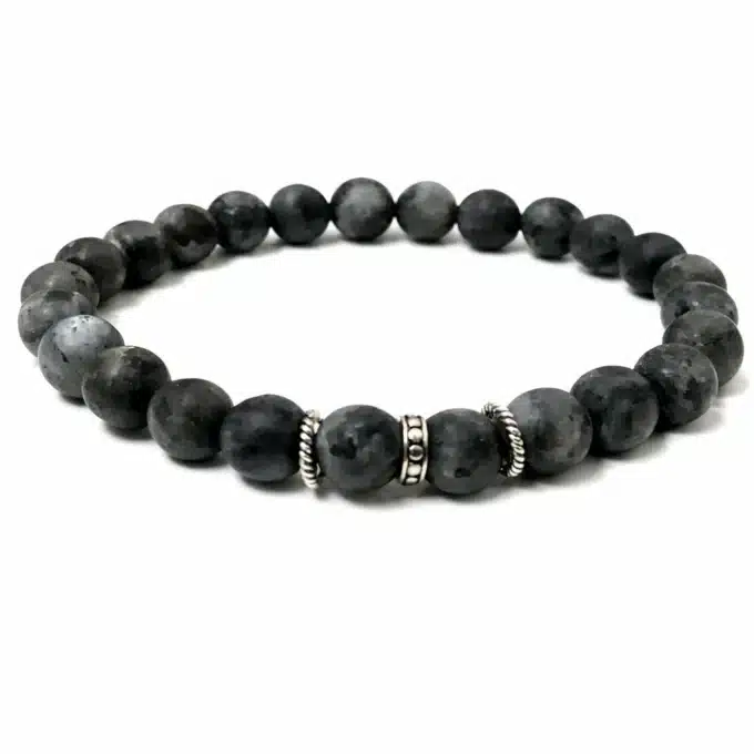Ce bracelet homme en labradorite naturelle séduit par son élégance sobre et son caractère minéral. Composé de perles boules en pierre naturelle grise mate, il offre un rendu à la fois moderne, discret et intemporel, parfaitement adapté au style masculin.