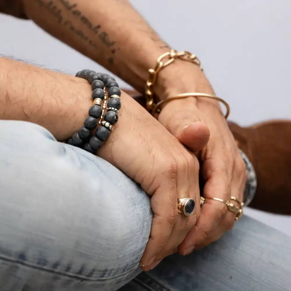 Un bracelet en labradorite au style masculin et authentique